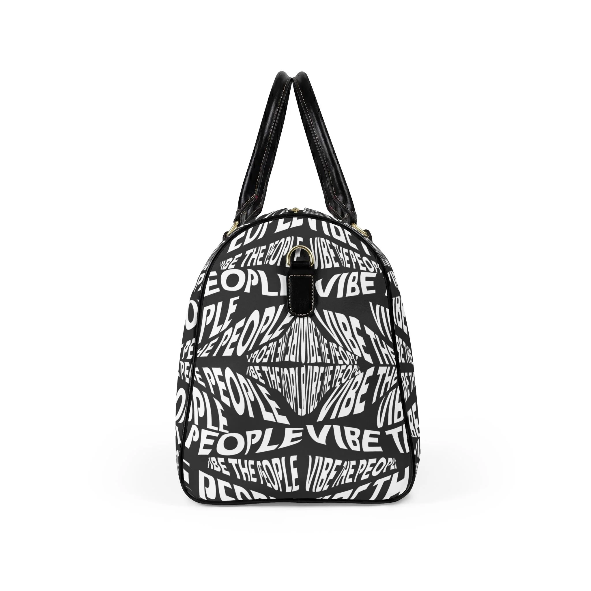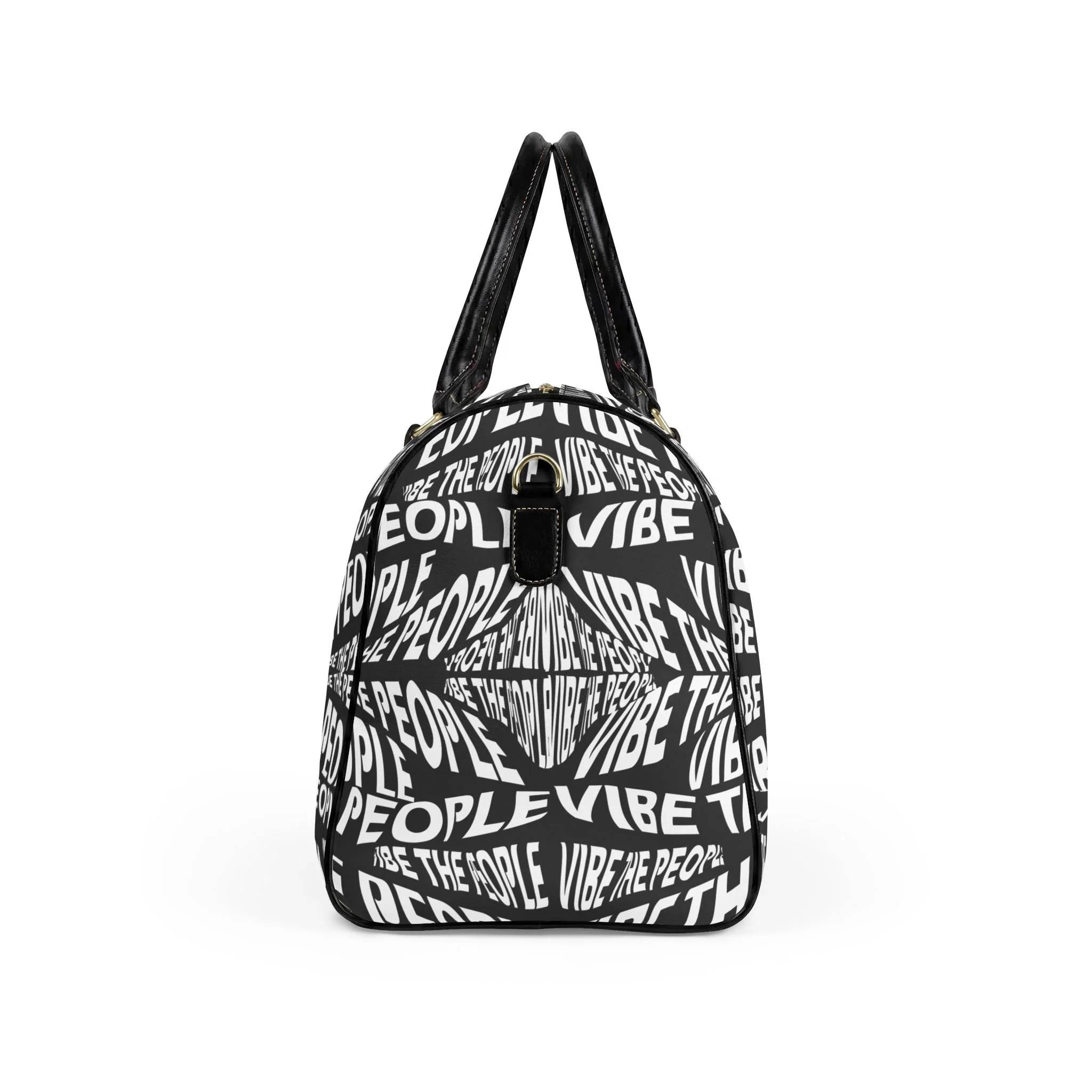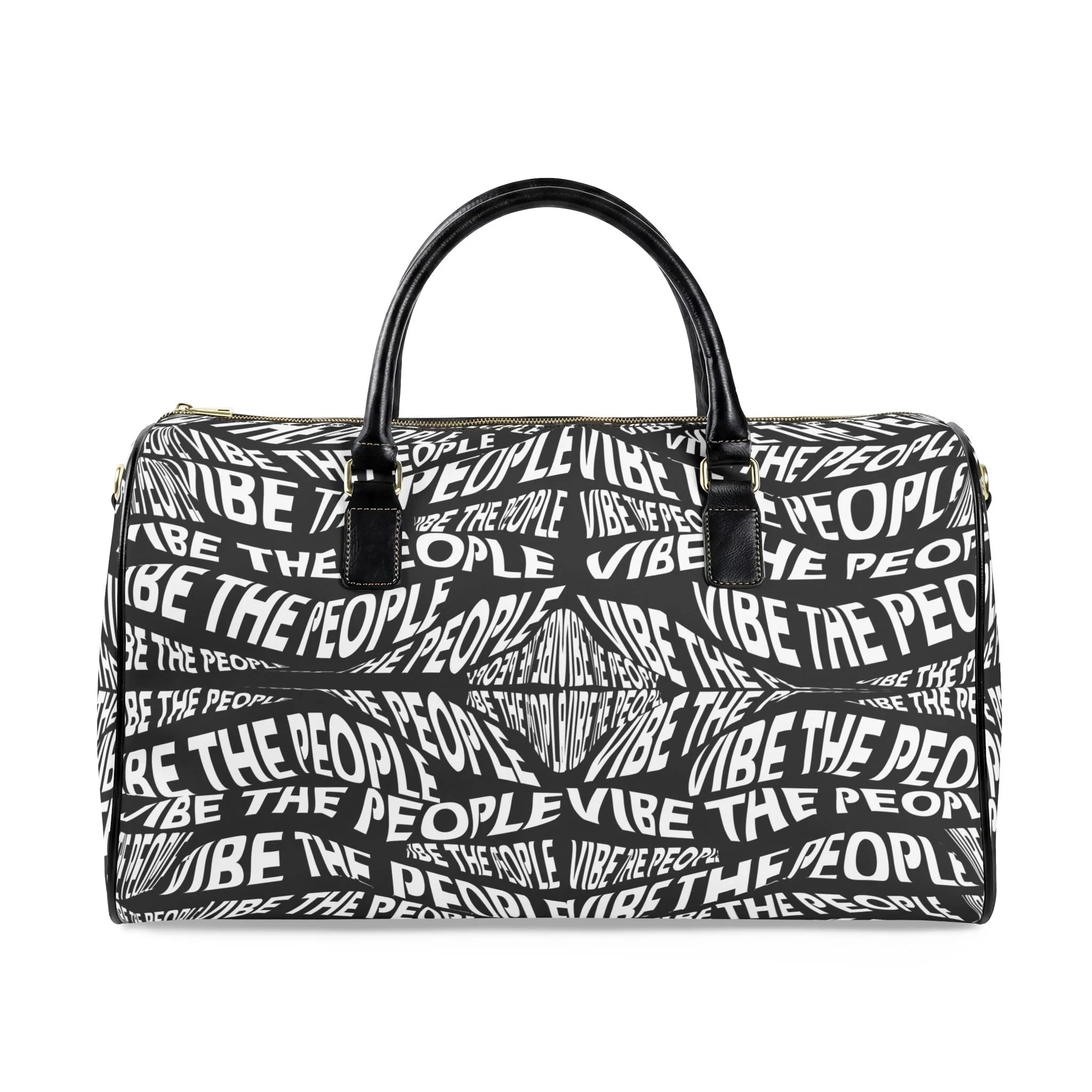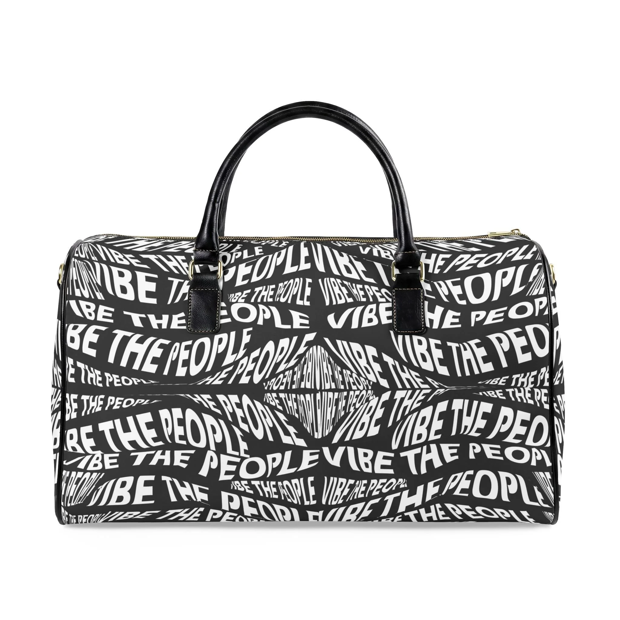 Graphic Travel Bag — "Vibe The People" Black Leather Weekender