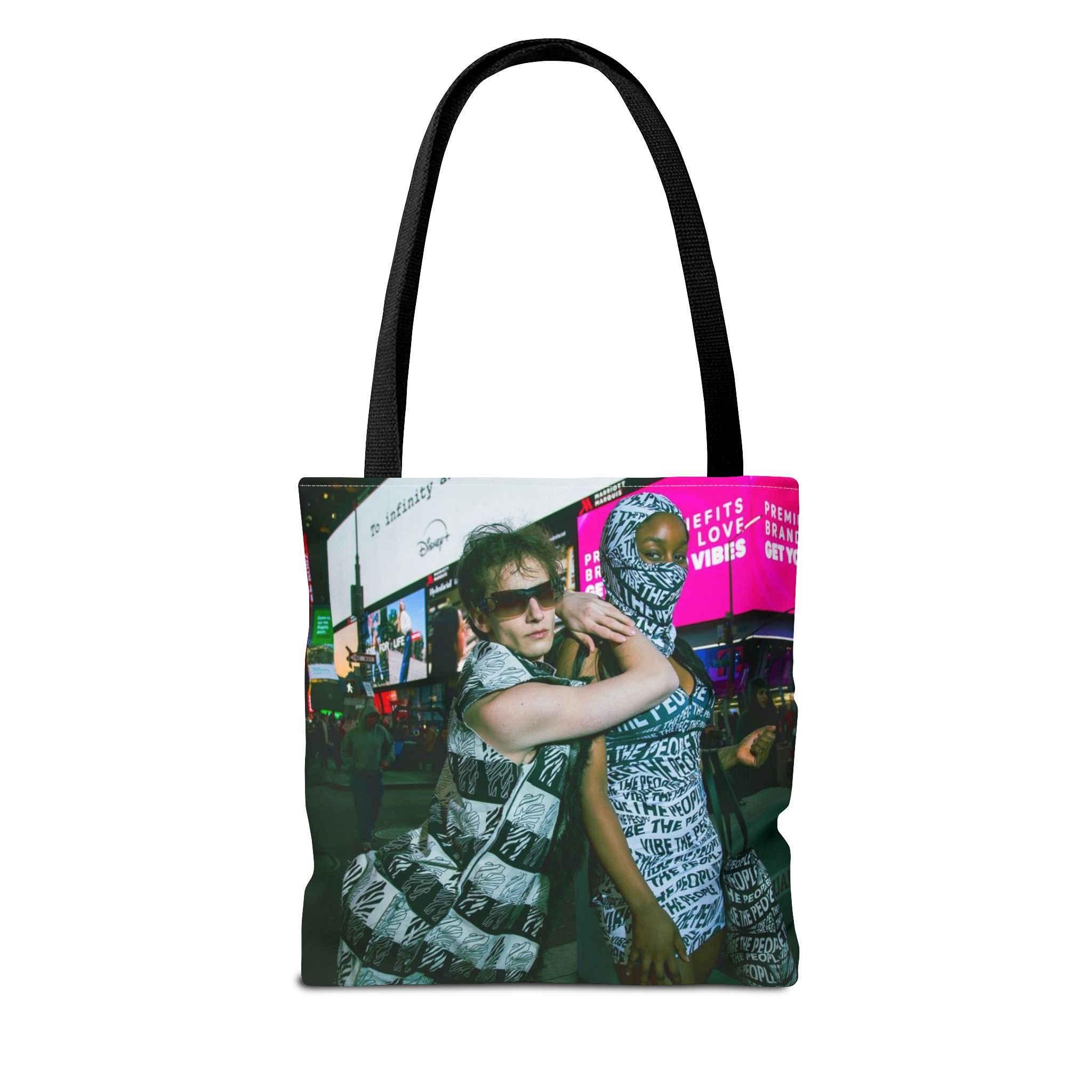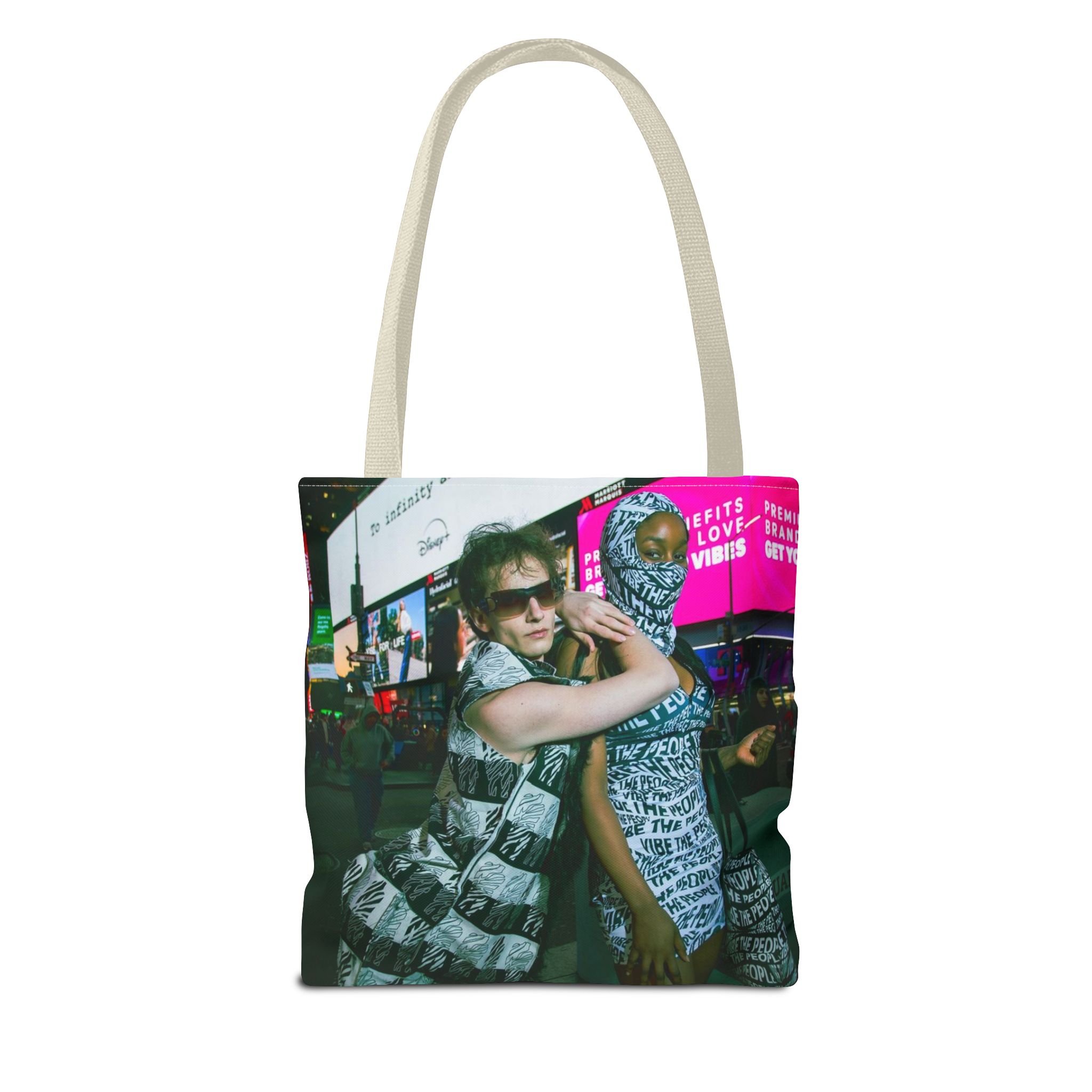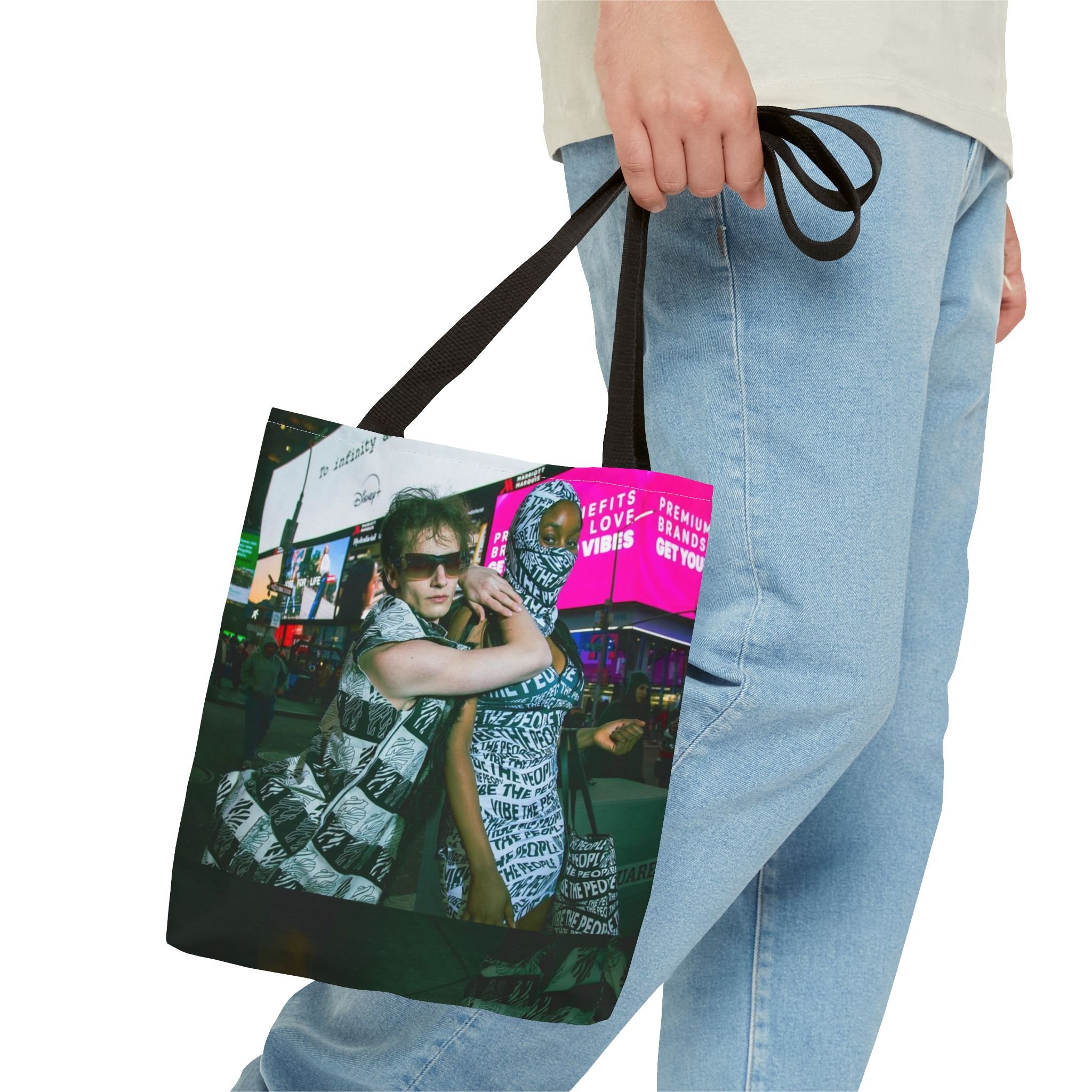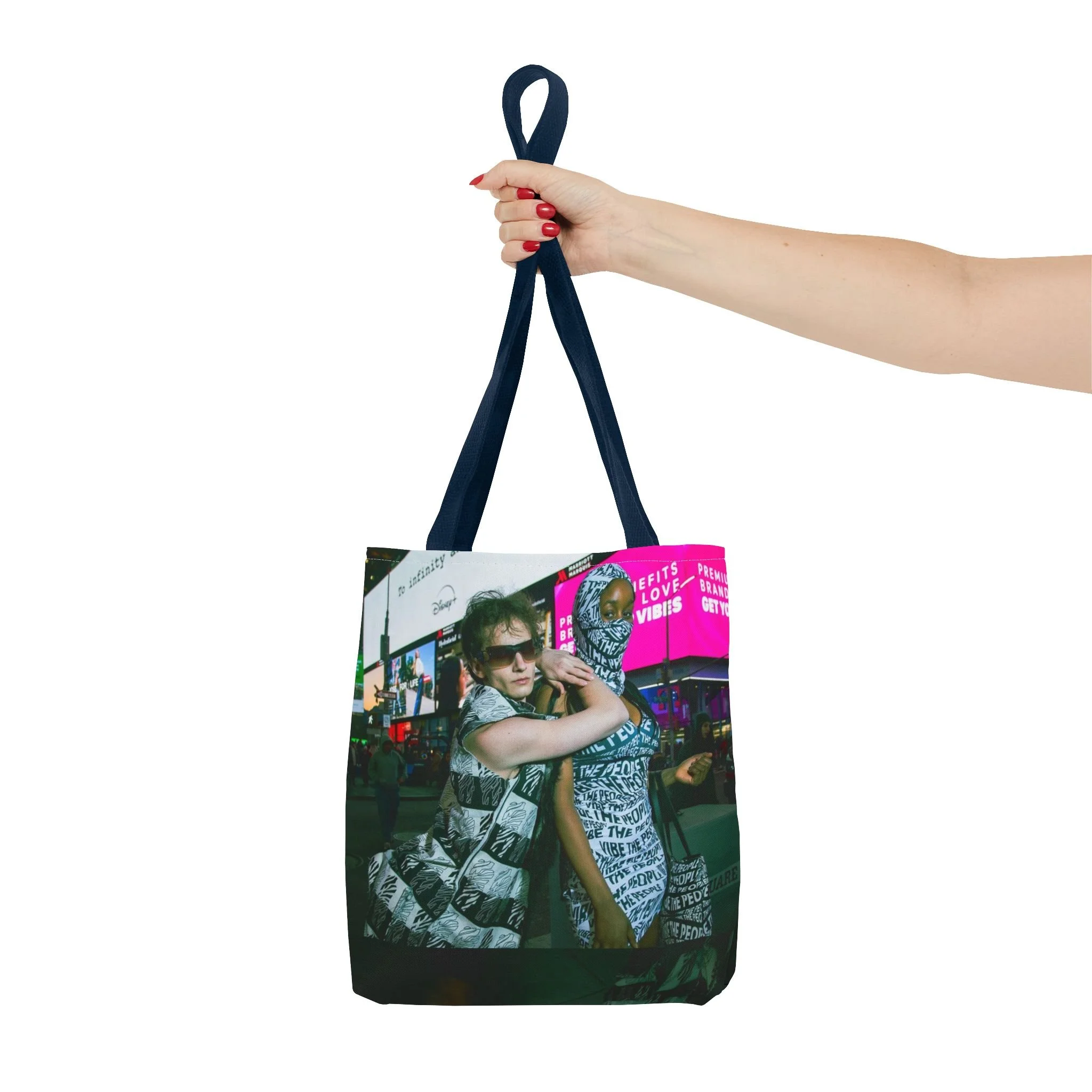 A durable, roomy tote that carries your city nights and bold style with equal ease. Printed all-over with a candid, neon-lit street scene, this tote feels like a snapshot from a late-night wander — gritty, vibrant, and alive. The structured box corners add usable volume for groceries, books, or a camera and jacket. Reinforced stitching on the handles and a medium-weight polyester body mean it stands up to daily use, while the laminated interior protects against spills and keeps the shape intact. Wear it to market runs, gallery openings, or simply as your everyday carry when you want an accessory that speaks louder than small talk.